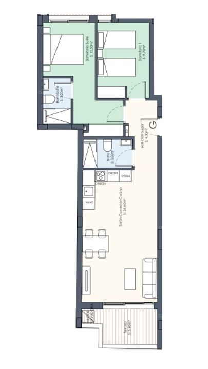 Dormitorios: 2